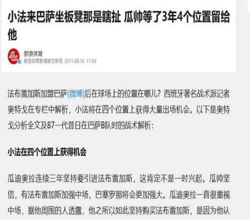 23. 新浪体育2011-8-16小法来巴萨坐板凳那是瞎扯 瓜帅等了3年4个位置留给他